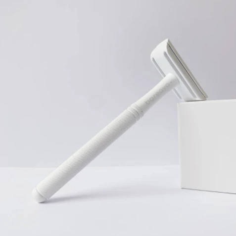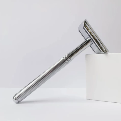 This double-edge safety razor from Bareaya has a longer handle than the average safety razor, which provides a good grip and makes shaving easy. Made of quality brass. 10.8 cm long. Weighs 95 g. Comes in an organic cotton pouch. Blades are available in our online store.