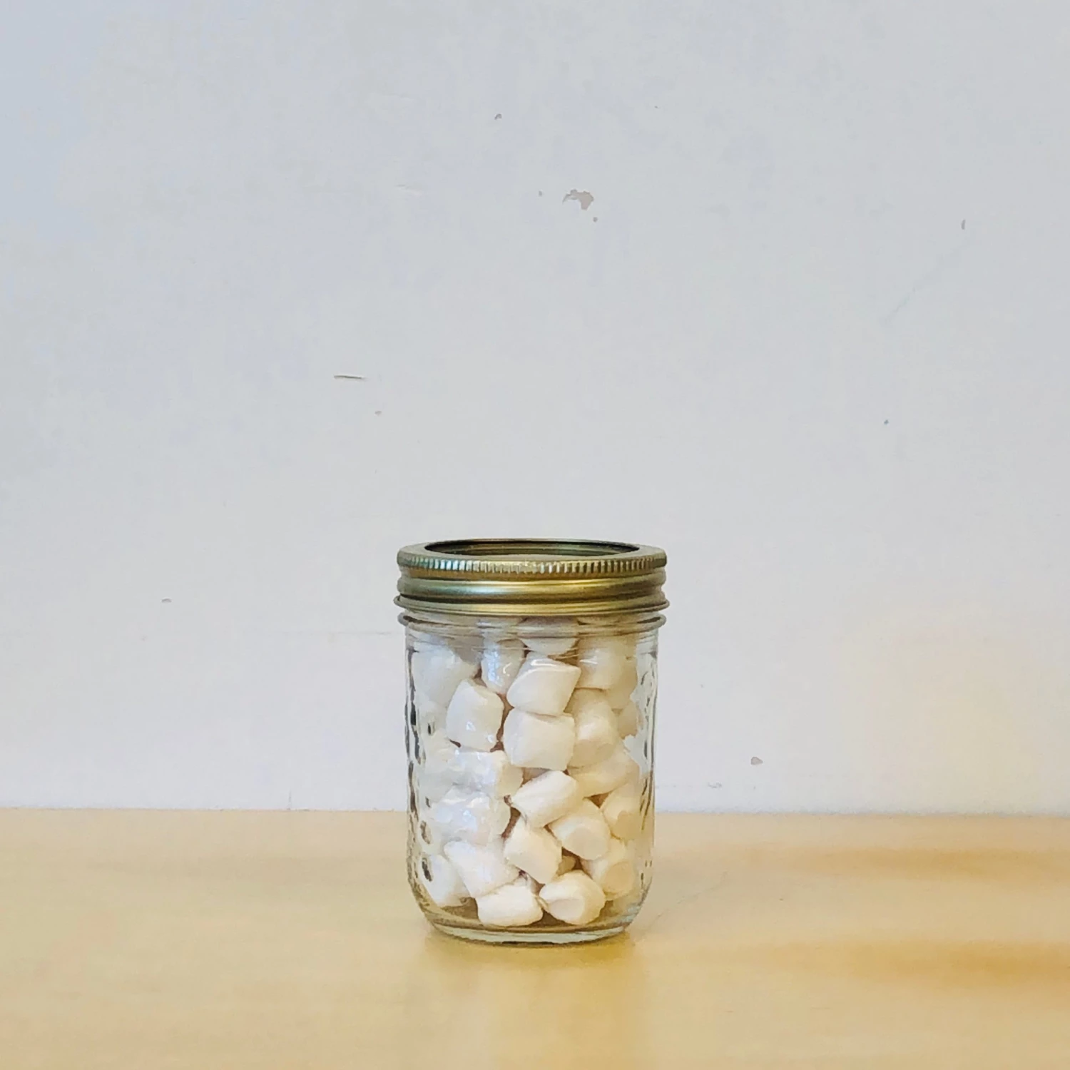Sold in units of 250 ml – or one full jar – as shown in our product picture. Product is measured, transferred to a compostable brown paper bag tied with an elastic rubber band, and labelled. Net weight is approximately 90 g.