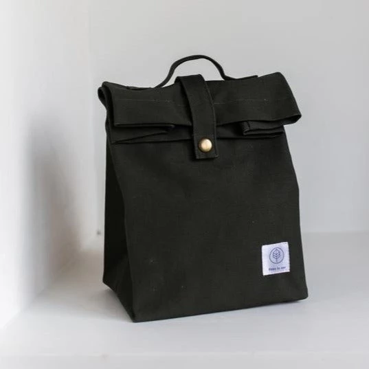 The epitome of eco-elegance; this lunch bag will have you excited to pack your lunch every day. With a gorgeous cotton exterior and an interior made of upcycled thermal insulating tarps. Two snap buttons of different heights allow you to adjust the height of the bag. Machine wash cold and lay flat to dry. Do not iron.