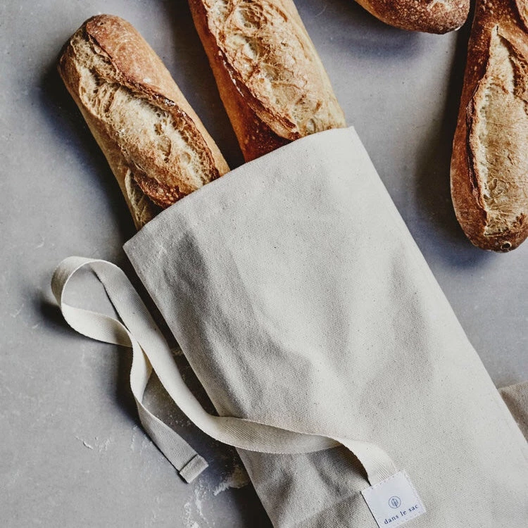 This beautiful bread bag is made of thick cotton that will let bread breathe but protect it from drying out. So you can really store bread for a couple of days. The quality and finishing are exceptional. We also discovered an alternative use for this bag: it has the perfect size to carry a yoga mat!