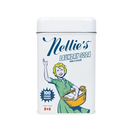 Sold in a reusable and refillable metal tin. The tin contains one plastic bag of detergent and a measuring spoon. Good for 100 washer loads. Net weight: 1.5 kg. Refills packaged in a brown paper bag are available.