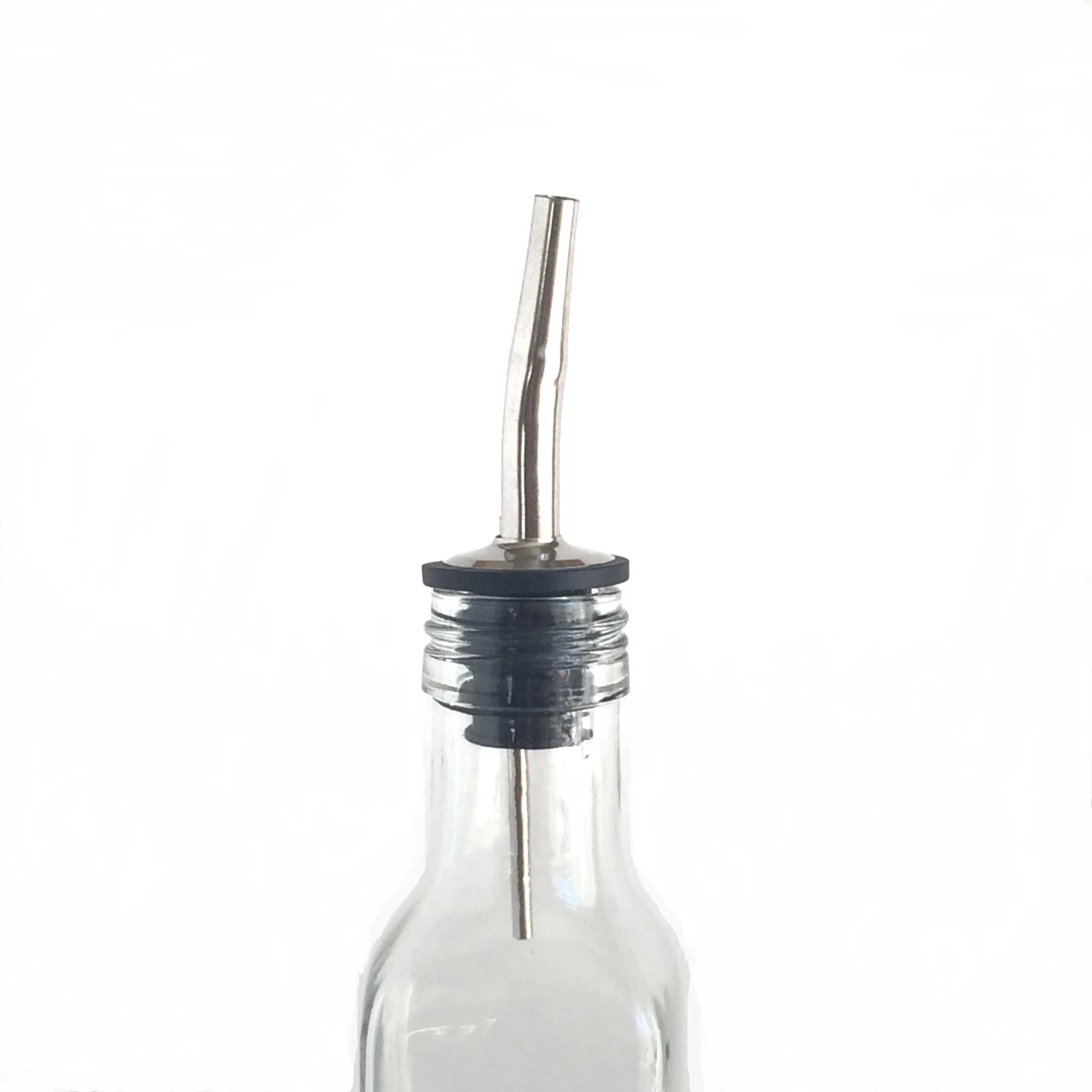 This stainless steel bottle pourer fits the majority of oil and vinegar bottles, including our 250 ml and 500 ml square glass bottles.