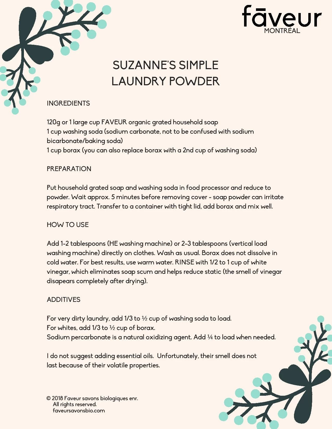 Borax is a naturally occurring mineral that is used in many cleaning products, from toothpaste to detergents. It is sold in powder form, and you can use it to make all sorts of natural cleaners, like Suzanne’s simple laundry powder (see recipe in pictures). Borax boosts the cleaning power of the other ingredients, softens water and whitens whites.