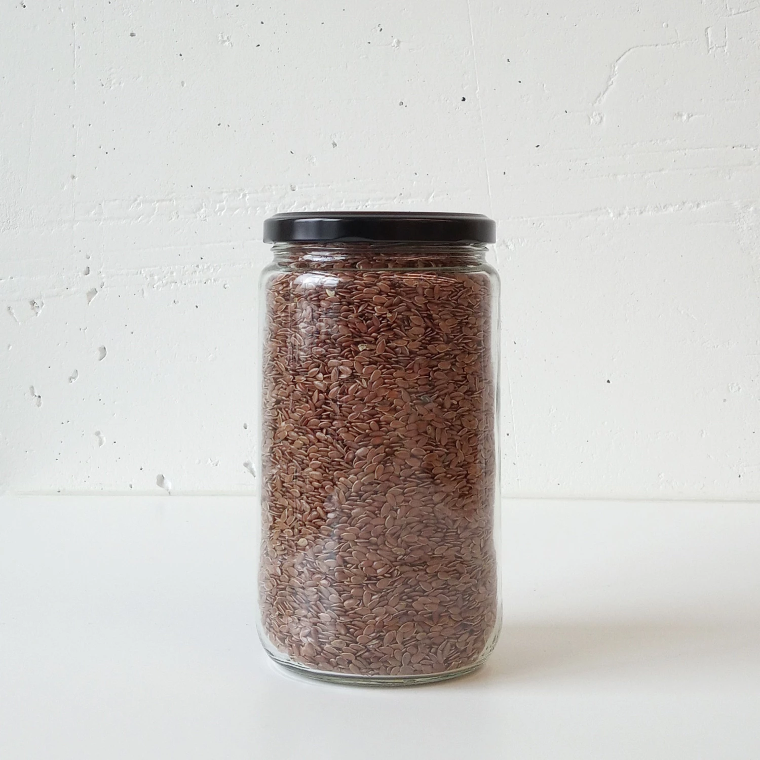 Sold in units of 750 ml – or one full jar – as shown in our product picture. Product is measured, transferred to a compostable brown paper bag tied with an elastic rubber band, and labelled. Net weight is approximately 510 g.