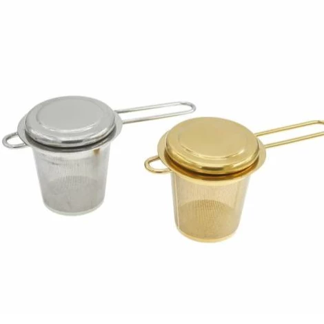 Basket-shaped loose leaf tea infuser made of 18-8 stainless steel that won’t rust. Comes with a lid that you simply press down to close. Fill with tea and place on the rim of your mug or tea pot. Let steep in hot water for a few minutes. Available in gold or silver.