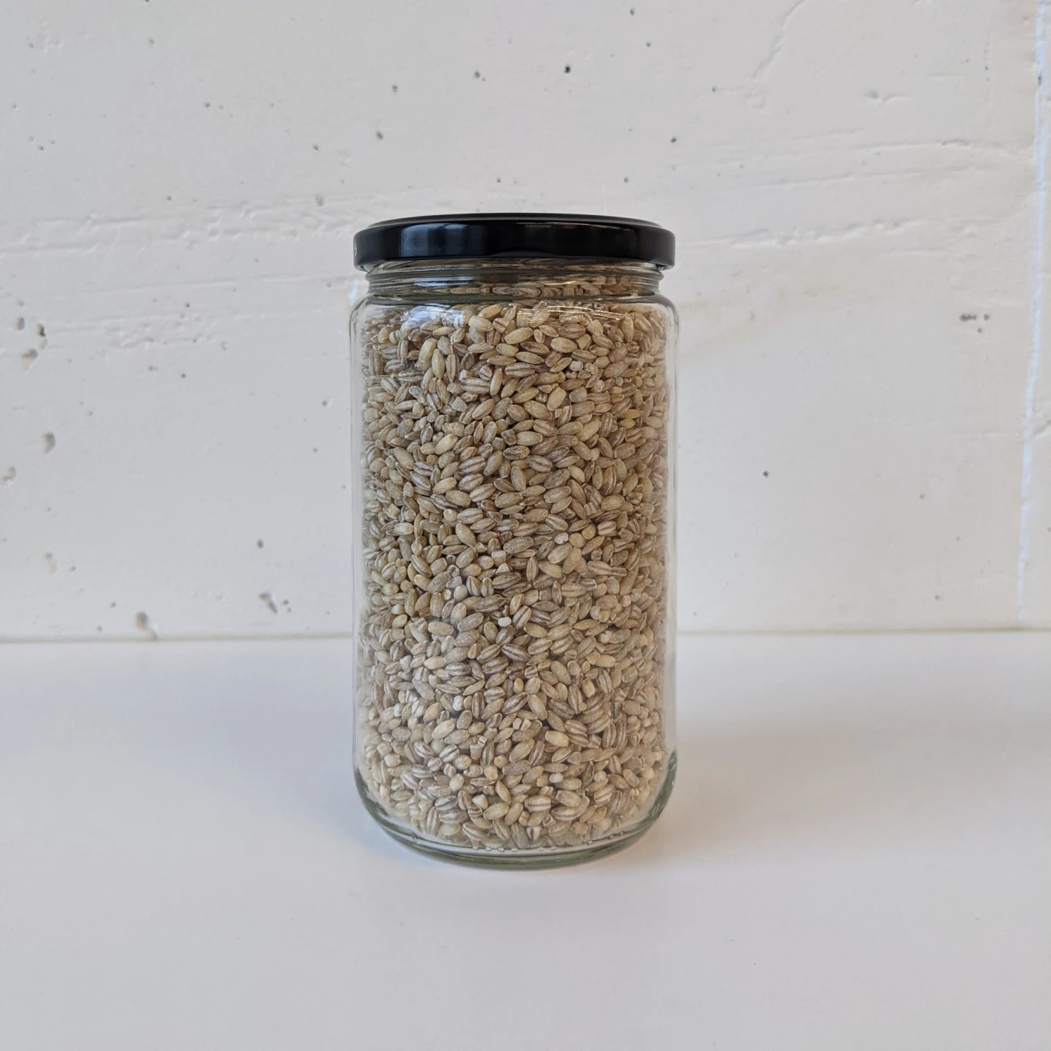 Sold in units of 750 ml – or one full jar – as shown in our product picture. Product is measured, transferred to a compostable brown paper bag tied with an elastic rubber band, and labelled. Net weight is approximately 600 g.