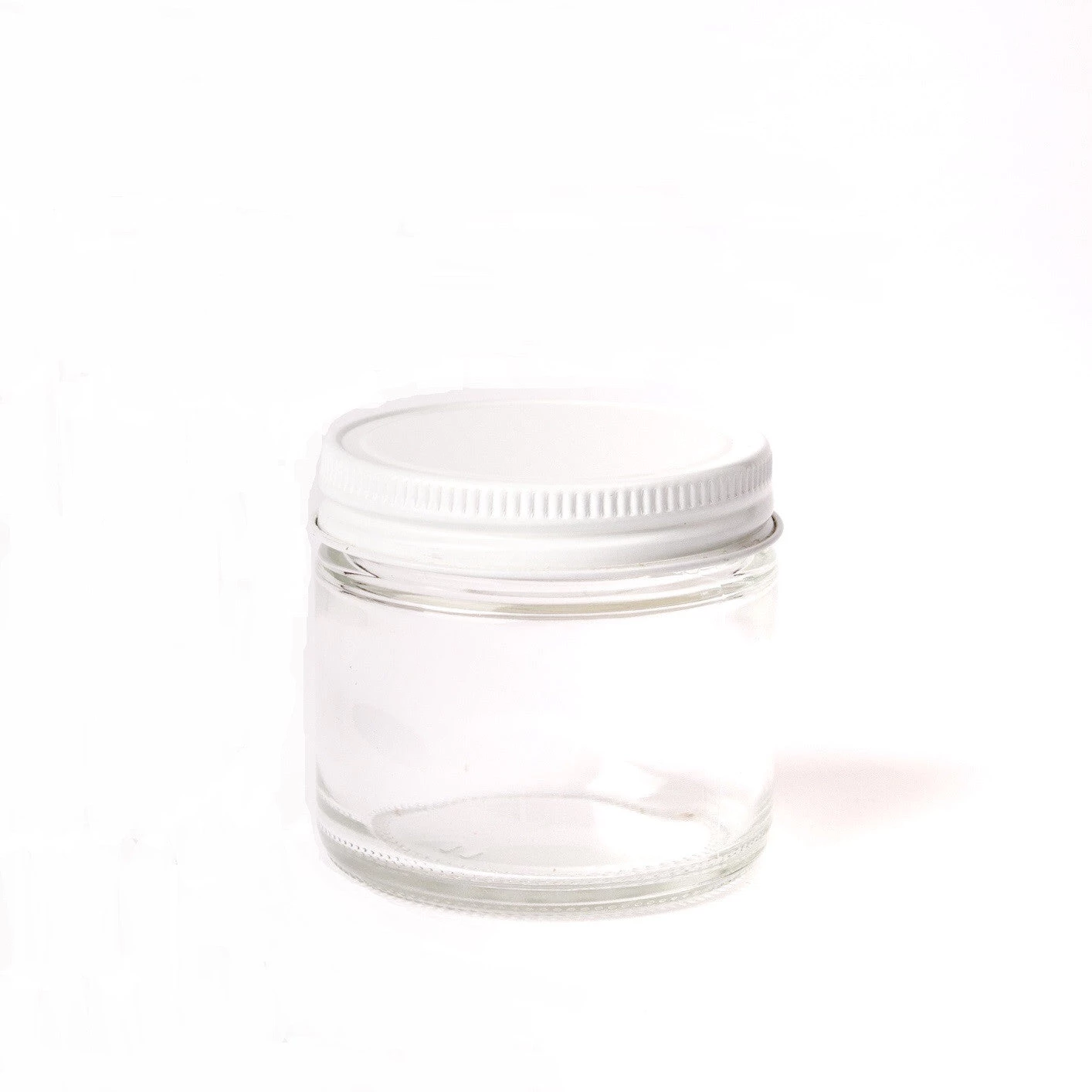 This jar comes with a white metal lid and has the perfect size for beauty products like creams, lotions or toothpaste.