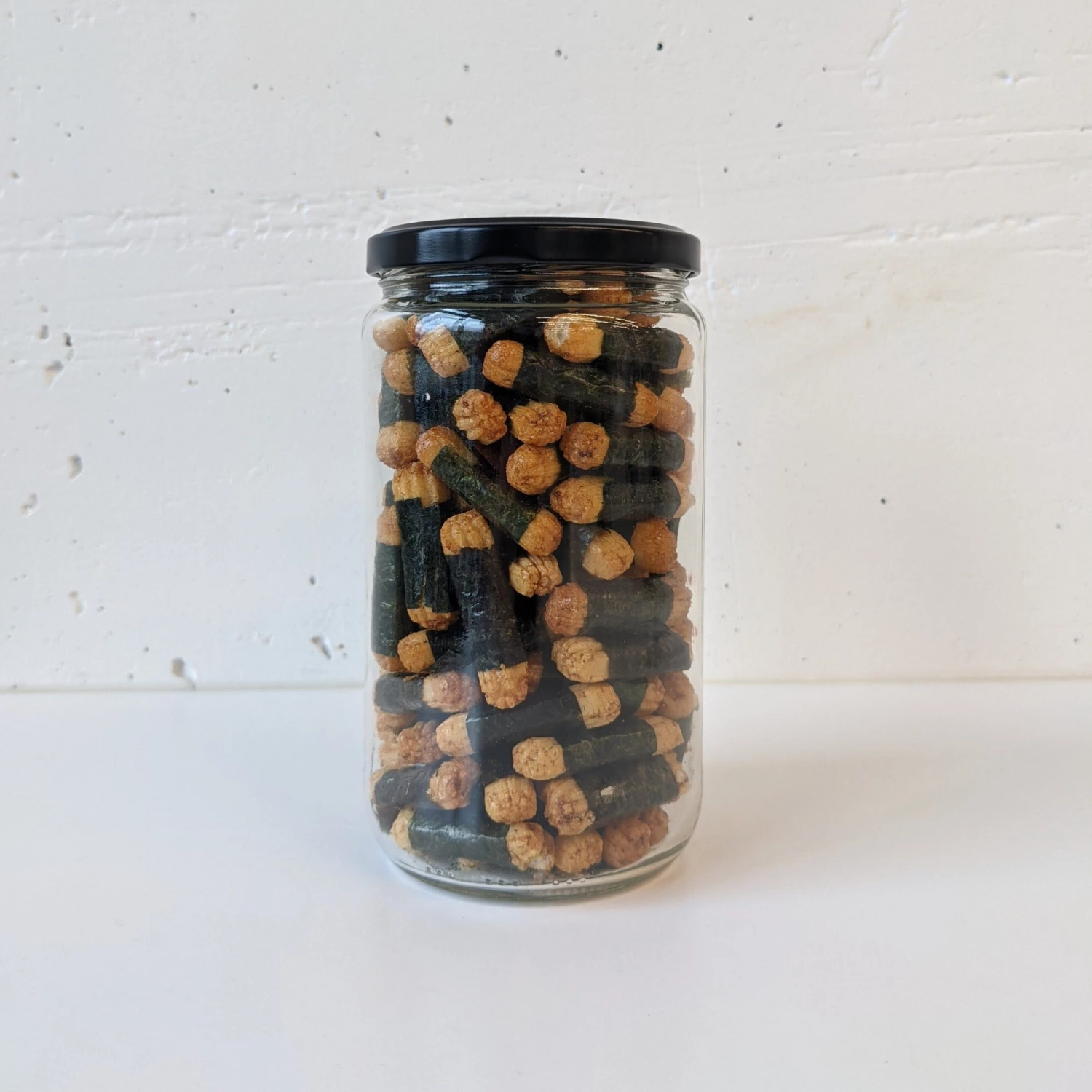 Ingredients: Rice flour, soy sauce (soybean, wheat, salt, water), seaweed, sugar, tapioca starch