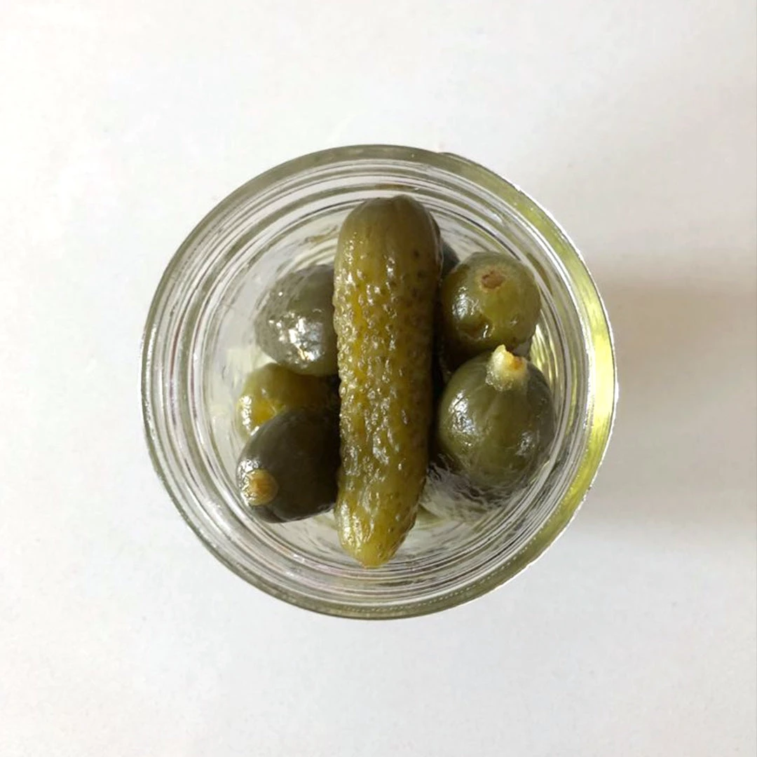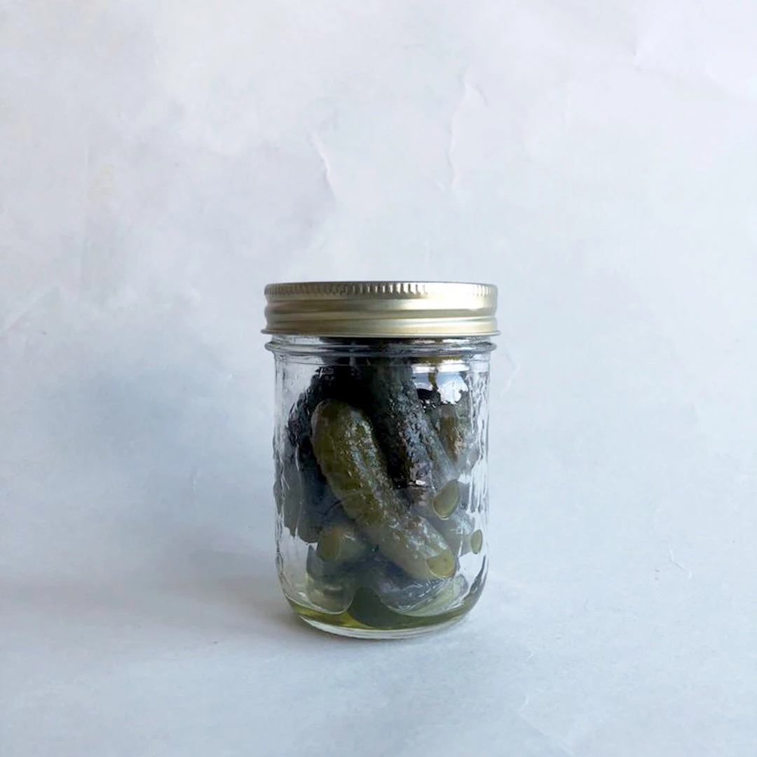 Sold in a 250 ml deposit glass jar. Net weight is approximately 120 g (9-11 pickles)