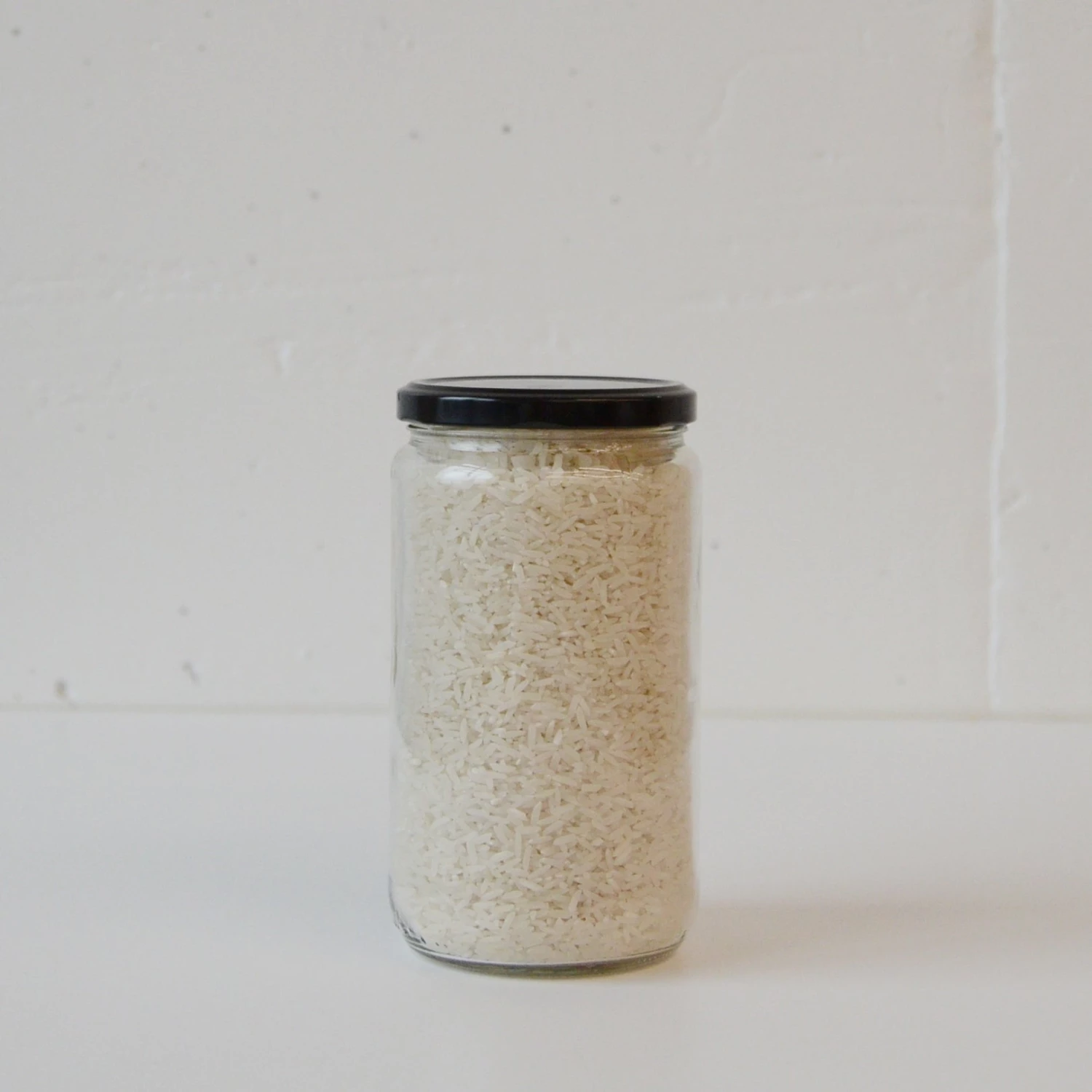 Sold in units of 750 ml – or one full jar – as shown in our product picture. Product is measured, transferred to a compostable brown paper bag tied with an elastic rubber band, and labelled. Net weight is approximately 630 g.