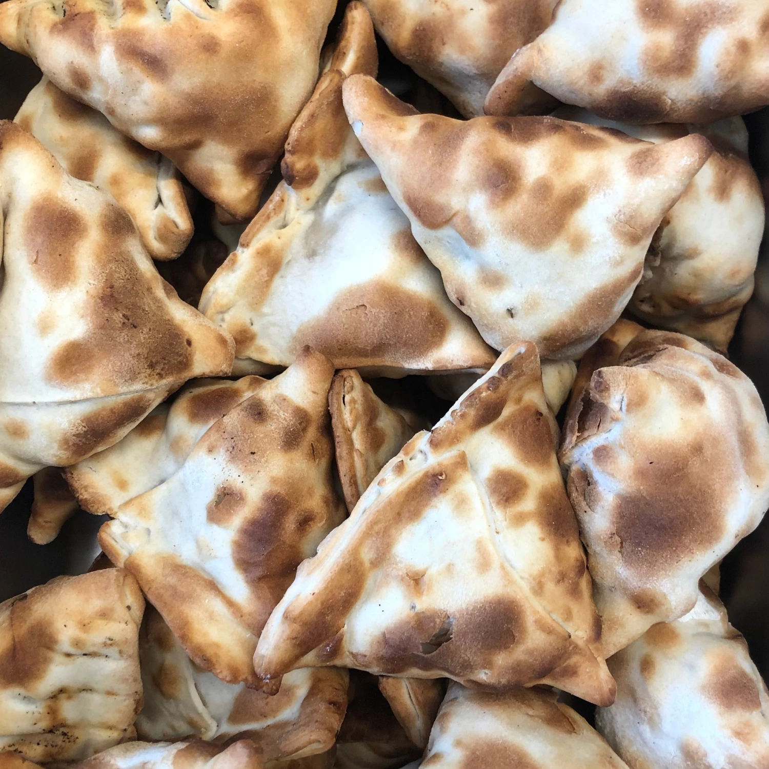 Spinach & Tofu Samosa: Tofu, spinach, tomato paste, flour, vegetable oil, water, ginger, garlic, salt, lemon juice, herbs and spices