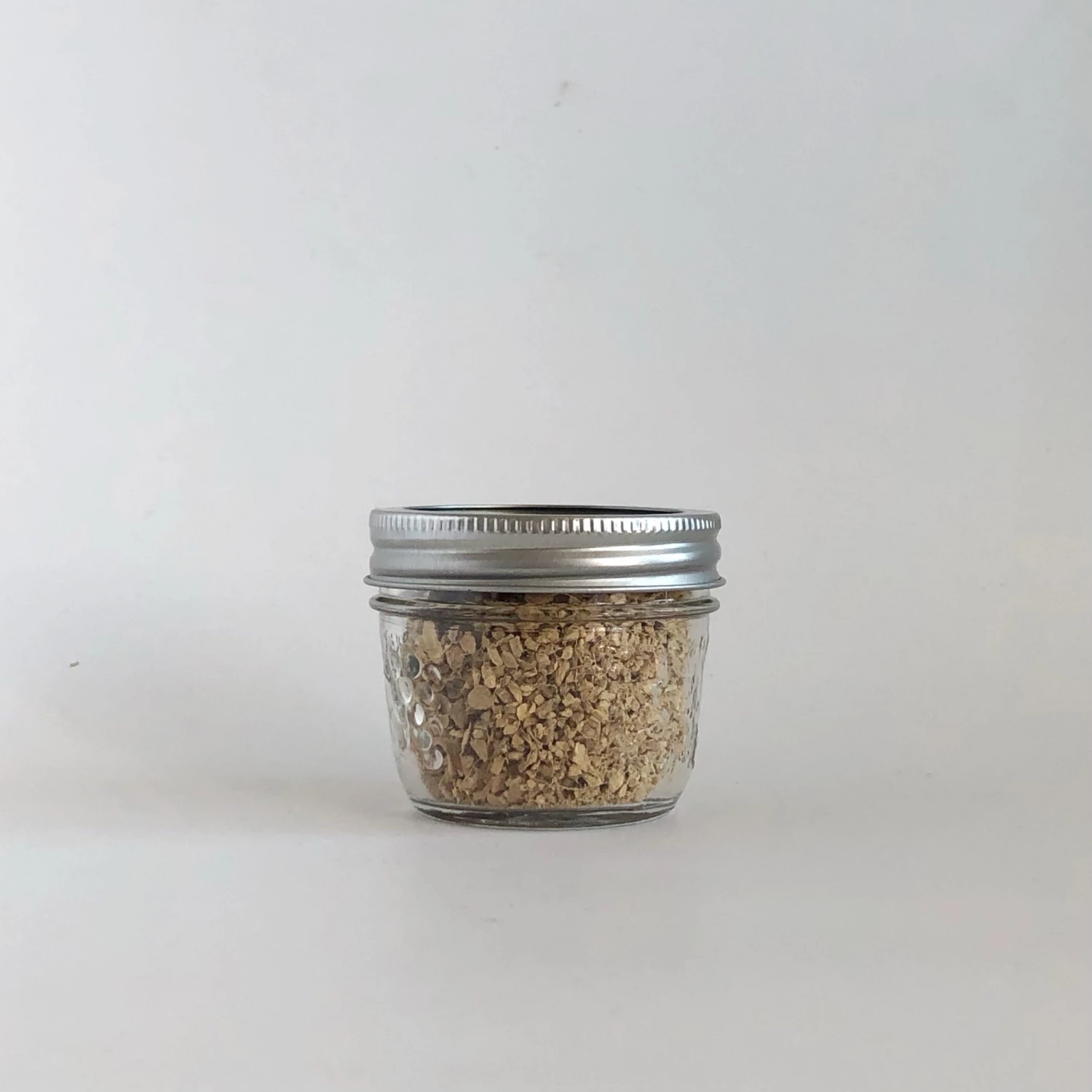Sold in units of 125 ml – or 6 TBSP – as shown in our product picture. Net weight is approximately 50 g.