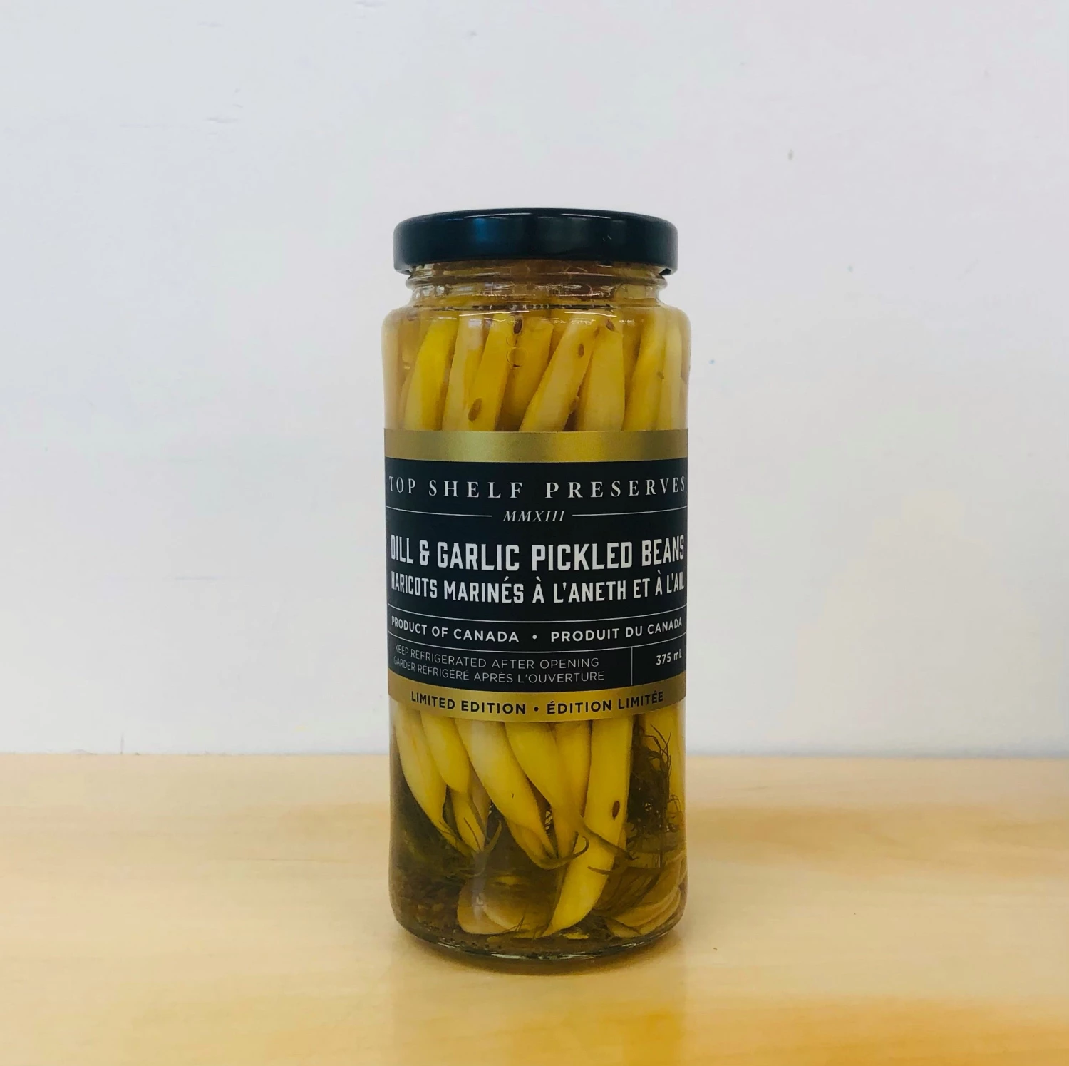 Ingredients: Beans, vinegar, sugar, salt, garlic, dill seed, dill weed, black pepper