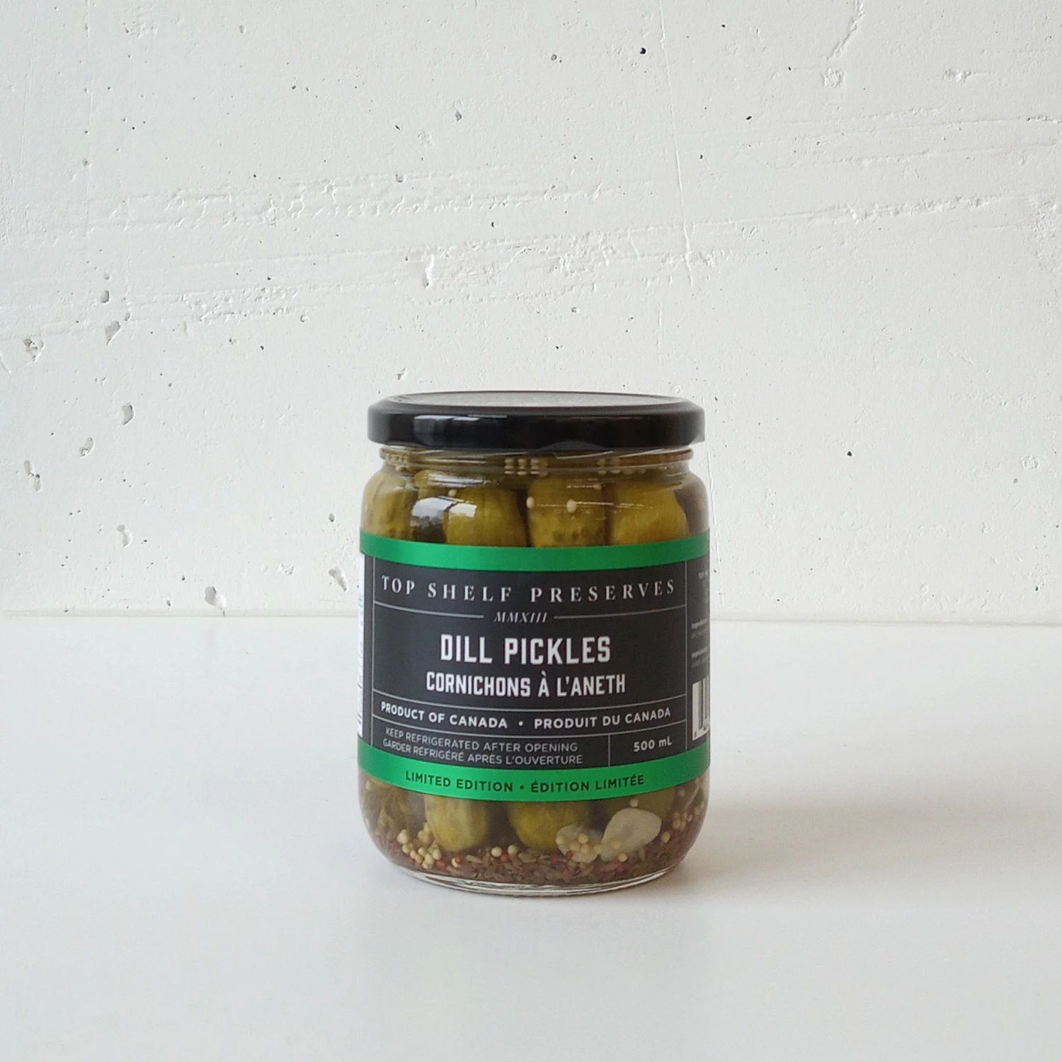 Ingredients: Cucumbers, vinegar, salt, dill, mustard seeds, garlic, peppercorns.